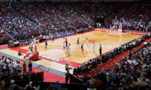 Presently, the PBA floor features a red block N at midcourt over the shape of the state of Nebraska in darker rood than the rest of the court. One of the four options would keep the floor the same.