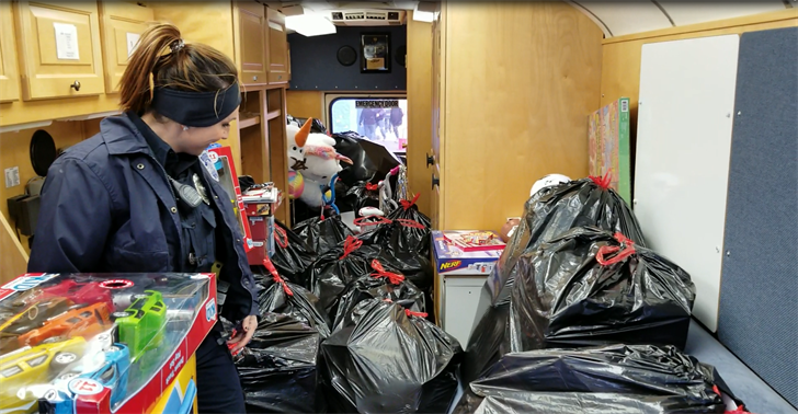 Beatrice Police Stuff the Cruiser...er, Bus... for Kids at Christmas