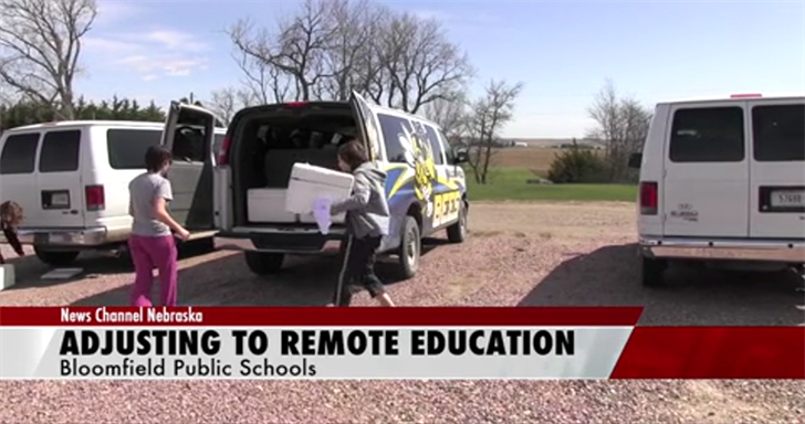 BLOOMFIELD, NE - School districts across the state continue to adjust to offering their services remotely. For Bloomfield Schools in northeast Nebraska, that means loading up vans to distribute lunch to students on six different delivery routes. Elementary School Principal Tabitha Gilsdorf says they hand out 170 meals per day, going as far away as Center and Lindy.