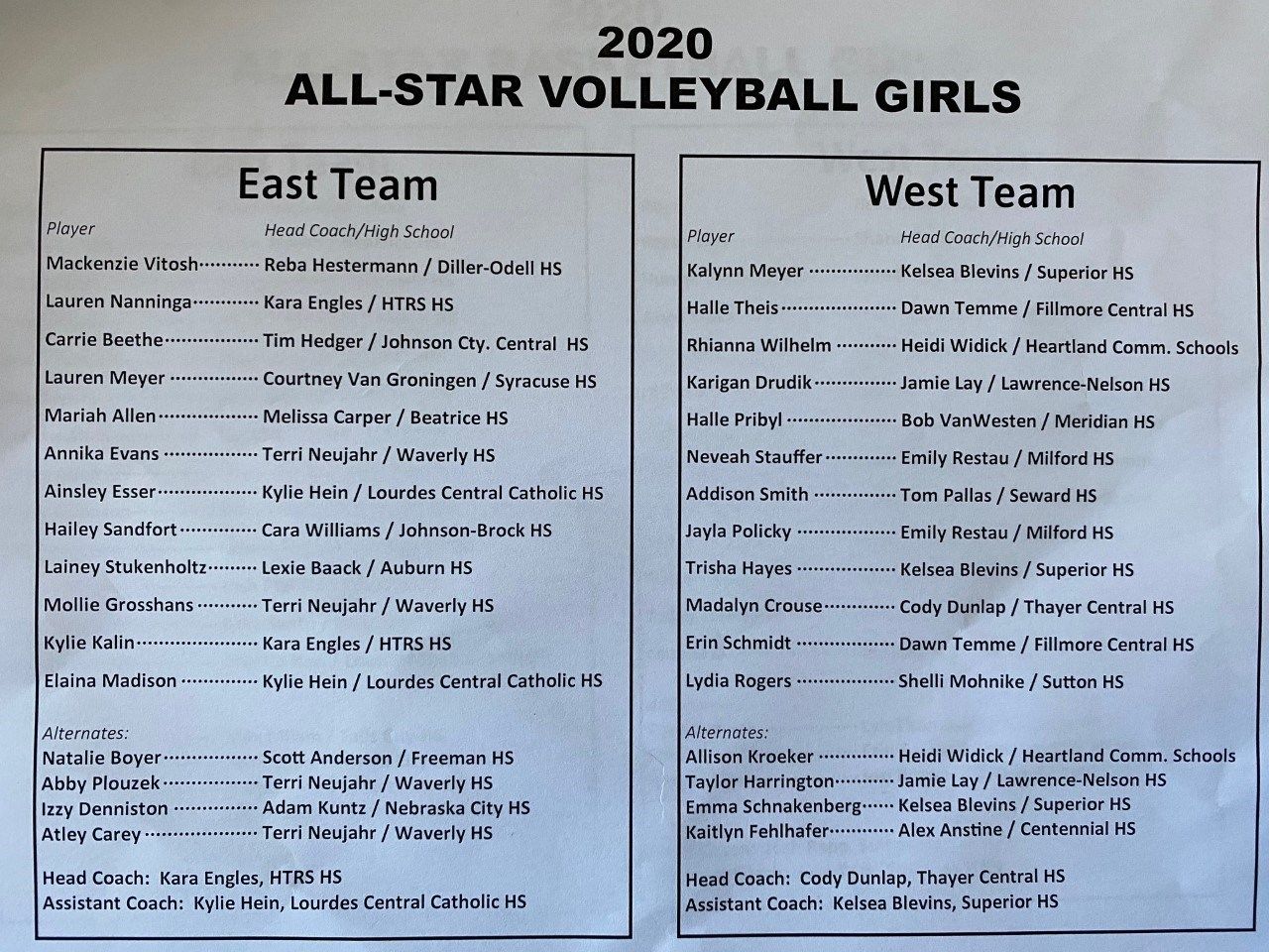 Listed are the rosters for the 2020 All-Star Volleyball, Girls Basketball, and Boys Basketball: