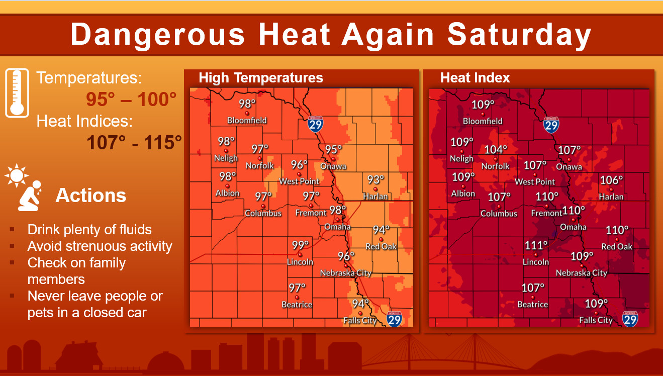 The National Weather Service in Omaha/Valley has issued an Excessive Heat Warning from 1pm to 8pm today.