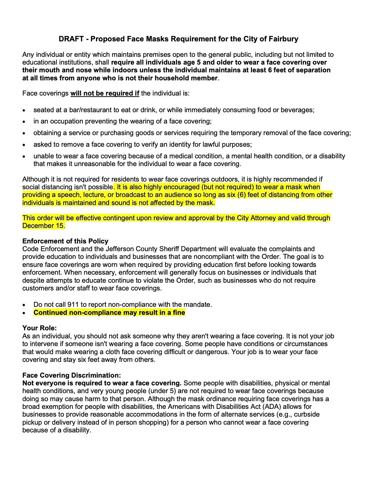 The board adjusted the proposed ordinance to say, “continued noncompliance may result in a fine.” Now, the ordinance will go back to the city attorney for review and the board will vote later this week. Mayor Homer Ward says it would be a step in following the guidance of public health officials.